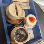 2023年6月オープンの「METDORU CAFE」で味わえるのは「タグァハンサン 茶菓子盛り合わせ」。ようかん(桃と小豆)、オランダ、あんバターもなか、黒胡麻カンジョン、くるみカンジョンといった伝統菓子が盛り合わせになっている。日本の「おこし」のような「オランダ」は、見かけはドーナツのようで、食べるとサクサク食感。