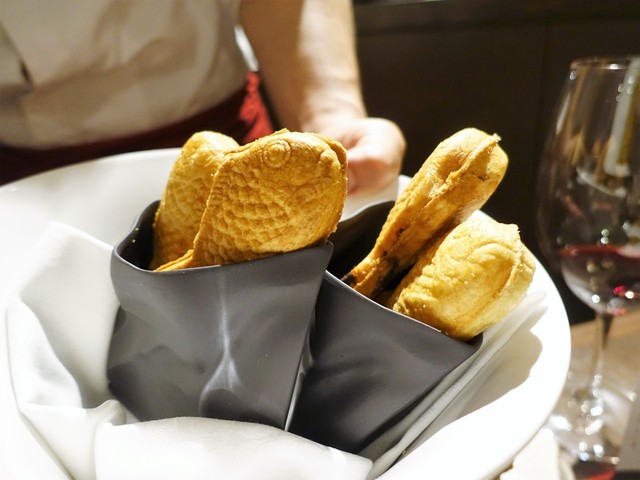 「シンシア」の代名詞ともいえるのが、目の前に運ばれあっと驚く「ルーアンクルート(魚のパイ包み焼き)」だ。フランス料理をもっと気軽に楽しんでほしいと、鯛焼きの形のパイの中にスズキ(季節によっては真鯛)を忍ばせてあり、パイのサクサク食感が損なわれないよう、先にソースと付け合わせを盛りつけ、後から焼き立ての“鯛焼き”をのせる。発想や形はユニークでも料理そのものは本質を外さないのが石井流だ。