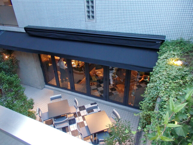 地下鉄北参道駅から徒歩3分、千駄ヶ谷の閑静な住宅街の一角、入口にツタが絡まる建物の地下1階に「シンシア」はある。地下ではあるが空が開け自然光が入るテラスがあり、開放感あふれる造り。この物件に出合うまで1年もの時間を要したそうだが、石井氏自身この場所がとても気に入っているという。