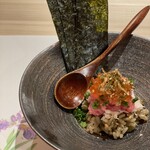 寿司ネタも大きく、握りも美しい。目の前でチャキチャキと動く仕事ぶりもパフォーマンスの一種です。なんと店主の鈴木さんは元ボクサーで、韓国や香港など海外で人気寿司店を営んでいたという異色の経歴。「ボクサー経験は寿司に活きてますか?」と聞いたら「フットワークの機敏さぐらいかな」と笑っていました。