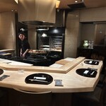 店舗は「時限堂」と同じ場所で、昼のみ「atami」の営業となります。扇形のカウンターにある8席の客席からは、焼き台や窯がよく見え、ライブ感を楽しむことができます。腕を振るうのは若きシェフ、高橋輝氏。火入れにこだわり、食材そのもののおいしさを引き出します。