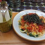 初訪問。朝からスパゲッティやライス料理を食べる客で人気。名物は「へしこスパゲッティ」。