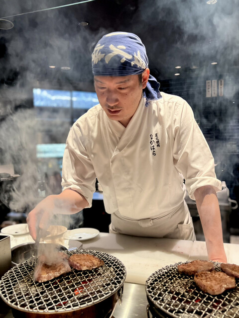 「初めは相手にされなかった」という芝浦の食肉市場に通い詰め、包丁の持ち方、肉のさばき方や切り方などを人一倍の努力で身につけ、店を成り立たせる経営を肌で学び、食肉業者から一頭買いを勧められ現在のような「お任せコース」を確立。後に三ノ輪の店を連日満席の人気店へと押し上げ、市ヶ谷への移転を機に「炭火焼肉 なかはら」を誕生させた、愚直な努力の人である。
