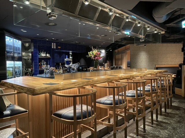 都内の夜景を一望できるスタイリッシュな空間に、カウンター席や幅広い人数に対応するテーブル席、ボックス席などを配し、焼肉店にしては珍しいオープンキッチンを導入。