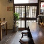 店舗は元々カフェだった空き家を改装。古くて良いところは残しつつ、キッチンタイルの貼り付けやカウンター・壁などの塗装はすべてDIYしたとか。自分たちで選んだというテーブルや椅子、照明器具がそろう店内は、温かく居心地の良い空間。木の温もりを感じるレトロな雰囲気にこだわりがうかがえます。客席はカウンター4席とテーブル2卓で、全12席です。