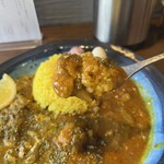 野菜鶏肉、これはクリームシチューでもいけそうだが、スパイスのカレーによるクリームシチューでもいけそうな素材がこの冬の寒さを抑え込み、ライスとも融合する暖かさと腹持ちの冬カレー。