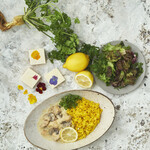 このレモンライスを活かすべく、メニューも拡大。先日は7種の野菜スパイストマト煮込みとのダブルソースを堪能しました。東白楽の本店で栽培された、無農薬の12種のハーブサラダもセットになっていて、早くも界隈の働く女性に大人気でした。「キューブケーキ」などパティスリーメニューも充実です。