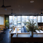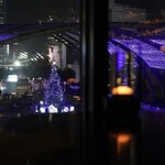 デートならぜひパーク側の窓際席を。屋上の公園から続く、スクランブルスクエアなどの高層ビル群が眺められる絶好の夜景スポットです。