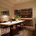 この二人が組んでオープンしたのが「Uké」です。場所は虎ノ門ヒルズ ステーションタワー地下2階「T-MARKET」内。席数はカウンター席とテーブル席合わせて27席。日本橋兜町の古い銀行をリノベーションした複合ショップ「BANK」などの内装デザインを手がけたチームによるビンテージや質感を感じるインテリアがオシャレで、大人が落ち着ける空間になっています。