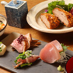 コンセプトは「これまでにない“ジャンルレス”で“居心地のいい”居酒屋」。西シェフが手掛ける産地直送の素材を使った料理は、おなじみの居酒屋メニューをオリジナルにアレンジ。「ポテサラ/ししとうジェノベーゼ/山利しらす」は和歌山の老舗しらす屋のしらすをたっぷりトッピング。「牡蠣とフルーツトマトのお浸し/コリアンダー」は、ビジュアルの美しさに独自のハーブ使いで同店ならではの料理になっています。
