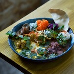 こちらのシェフは南インド料理の人気店「エリックサウス」に4年勤め、永田町の東京ガーデンテラス店の店長を任されたという経歴を持つ方。その後、独立に向けて退職するもコロナ禍に突入してしまったこともあって、まずは恵比寿にてRUBY MURRAYの名で間借りカレー店を営み、この度満を持して独立店舗をオープンしたという流れです。