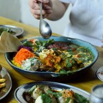 ビーフは南インド料理というわけではなくこちらのオリジナル。シャバッとした野菜の粒子感あるグレイビーは牛乳で煮込んだほろほろのビーフがスパイスによって見事にひとつになっていてこちらもまたご飯が進むカレーです。