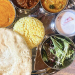 ランチの「ターリーセット」1,590円は、ほうれん草キーマ、ビーフ、日替わりのフィッシュ、ポーク、バターチキンの中から2つ選んで注文します。色々とあるので通っても飽きなくて良いですね。