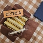 同店のスペシャリテは、世界一薄いチョコレートを目指した「コルテッチャ」。木の小枝のような形状で、薄く折り重なった口溶けのよいチョコレートの層が特徴です。そのチョコレートの薄さは、なんと0.03mm!