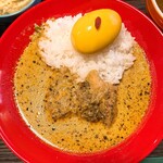 豚のバラとヒレ肉がゴロッと入ったご馳走感が、いきなり心をわしづかみに。カレーソースは、フルーティーな甘みと酸味が主張しながら、まろやかなうまみが支える厚み豊かな味わい。グレイビーなテクスチャーもしっかりあって、やや硬めに炊かれたライス(大盛り無料)との相性も抜群です。
