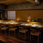 席はカウンター8席、4~6名定員の個室が1部屋。完全予約制でディナーのみの営業です。