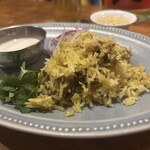 チキンドライは単体でわかりやすく全体の満足度を上げてくれるアイテム。そして特に気に入ったのがマトンニルギリ。ニルギリとはカレーリーフやコリアンダーリーフなどのハーブを使ったカレーなのですが、濃厚さと爽快さのアウフヘーベンがなされていて絶品。さすが名シェフだと感動しました。サービスで出してくれたモールコロンブはヨーグルトのカレー。豆のコフタ(団子)入りで、こちらも爽やかでどこか癒やされるような味。