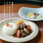 『前菜はカウシータという鶏肉を詰めたマッシュポテトサラダと、白身魚のスープ。カウシータはおせちの錦玉子のような食感の中に、みじん切りの胡瓜のシャキシャキしたフレッシュさが共存し、黄色唐辛子が全体の味をさりげなく引き締めている、未体験マッチングが素敵な一品。スープは魚醤の風味溢れエスニックな感じがした』(amtaro23さん)