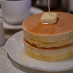 浅草で人気の喫茶店で「食べログ 喫茶店 百名店」にも選出されたことのある「珈琲 天国」の「ホットケーキ」。表面はさっくりしつつも中はふんわりとした食感で、味も見た目も昭和感たっぷり。店名のロゴ「天国」と書かれた焼印がかわいらしさを演出しています。大人も子供も大好きな正統派の「ホットケーキ」という印象です。「ホットケーキ」は熱伝導の良い銅板で焼き上げています。こんがりキツネ色の焼き目に思わずうっとり。バターと蜂蜜をかけて食べれば、思わず「おいしい!」と叫んでしまいそう!