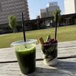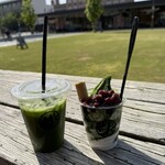 老舗の日本茶専門店が営むカフェです。ぜひ味わっていただきたいのが「お濃茶(おこいちゃ)パフェ」。茶せんで点てたお茶のソースと、ソフトクリームの相性が絶妙!自家製の寒天や小豆、フルーツ入りで食べ応えもしっかり。