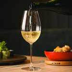 おまかせコースの料理に合わせてグラスワイン5杯がつく、ペアリングコース(14,300円)も好評です。