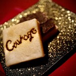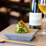 2022年度版「ゴ・エ・ミヨ 」で期待の若手シェフ賞を獲得した古屋聖良さんの料理と、伝説のサービスマンと呼び声の高い相澤ジーノさんセレクトのワインや日本酒ペアリングを、艶やかで高揚感のある空間で堪能できます。2024年のミシュランセレクテッドレストランにも選出された一流店なので本当にワンコもOKなのか聞くと「海外では普通です。ご家族ですから」と温かく迎えてくれました。