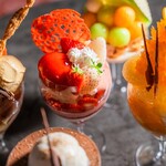 パフェの人気メニューは、精製糖・乳製品不使用、グルテンフリーで通常のカロリーの30~50%オフというヘルシーな「季節限定のフルーツパフェ」。季節のフルーツをふんだんに使い、ビジュアルにもこだわったパフェは、見ても食べても幸せ気分いっぱいになります。