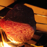 肉質や部位に合わせてさまざまな熱源を使うのも「火入れに心と味が出る」という思いから。うちもものたたきは1度、常温に戻してから表面を藁で焼き付け外側からじっくりと火を入れている。香りをまとわせることで肉のまろやかなうまみが増幅。