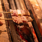 焼き鳥は一口目でガツンとおいしさが伝わるように、一番上に大きめの身を串打ちするのも井口さんのこだわりだ。絶妙な火入れ加減による、ジューシーでみずみずしい焼き上がりも秀逸である。