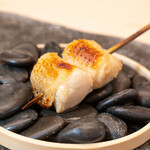 〆に登場するのは一口サイズのTKG。ご飯に添えられているのは、卵黄ではなく焼き鳥の「ちょうちん」に付くきんかん(鶏卵)。ボイルしたきんかんを醤油漬けしてから炭火で焼くことで、パリッとした皮からとろとろの黄身が弾ける食感を楽しめる。きんかん特有の臭みが苦手だったという井口さんが試行錯誤し「きんかんの一番おいしい食べ方を究めた」と話す名物だ。