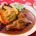 カレーはチキン、キーマ、ポーク、シーフード、マトンがあり、その内容が随時入れ替わっていく形。マトンがビーフになったりポークが2種になったりすることもあるそうです。創業時から変わっていないメニューはポークのカツビンダルーのみで、他は一期一会のメニューとなるとのこと。