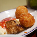 「空豆と穴子のフリット」500円、「クリームコロッケ2個」400円を頼み、ハイボールを頼んで「カツは後でお願いします」と注文する。自らのオーダーに一人悦に入っていると料理が運ばれてきた。