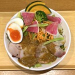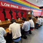 そして、入口の横には「肉 多め 炭水化物 少なめ」のマッチョな男性のシルエット入りの看板が。こちらは「六厘舎」「舎鈴」の新ブランドラーメン店で、ラーメンは太るというイメージを払拭させたいということがコンセプトのラーメン店です。
