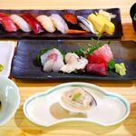 おすすめのメニューは「にぎり おまかせ」(6,600円)。仲卸「鈴富」自慢の天然マグロをメインとした寿司12貫と一品料理、お椀が付いたセットです。