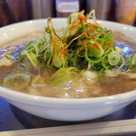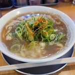 ラーメンは2種のチャーシューに刻み玉ねぎ、ネギ、海苔です。