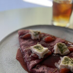 ホットクレープはすべてにフランス産発酵バターを使用し、「シュガー」「塩キャラメル」「岩城島レモンシュガー」「ショコラ」などをラインアップ。さらにトッピングにジェラート、バニラシャンティ、クリームチーズ、季節のフルーツなどを自由に組み合わせることができ、好みと気分次第で何通りも楽しめます。