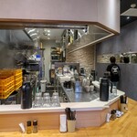 店内はL字形のカウンター席のみで席数は12席。スタッフも店の雰囲気に合わせて、黒のTシャツとデニムパンツというオシャレな服装。カジュアルな雰囲気の中で気軽に楽しめ、一人でも入りやすい雰囲気があります。