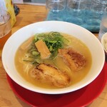 スープは鶏がら、もみじ、豚骨などから引かれた白湯、こってりとはしていますが醤油の塩味や酸味が程よくまろやかさもあり中華系のスパイスの香りと辛味も感じられます。