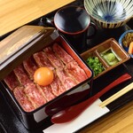 店名の由来はオーナーが買い付けの際、東北の牧場で見た朝日があまりにも美しかったことから。素晴らしい環境で育った牛たちに感謝とリスペクトの気持ちを忘れないよう、命名したのだそう。和牛のポテンシャルを感じずにいられない至極のステーキ重を味わいに、足を運んでみてはいかがでしょう。