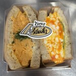 焼いてないパンに焼いた玉子がサンドされてますが、パンを焼いてもらうこともできます。 (レタス、トマト、きゅうりの野菜サンドも大好き!)