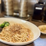 タンタンタイガー店主にして「Cooking Maniac」という人気ブログを運営し、Xでよくバズっている東山氏。太い麺にゴマペーストとラー油が絶妙にからむ硬派な汁なし担々麺は、バランスよくお手本のような味です。