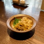 卵3個分とは思えないほど大きなだし巻き卵からは、ジュンワリとおだしが滴っている。「茶碗蒸しをイメージした」と黒崎さんの言う通り、おだしと卵の優しい溶け合い方にうっとりしてしまう。しかも歯が不要なほどホワホワの食感で、卵焼きというより湯葉のような趣だ。