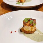 パスタは手打ちが何種類か用意されている。太めのフェットチーネも自慢の一つで、ムール貝や大きな北海アサリが、大葉のジェノヴェーゼソースで和えてあるメニューが用意されている。太いフェットチーネには貝の出汁と大葉のジェノヴェーゼソースがしっかり絡んで、見た目以上に濃厚な味わいがある。聞けば、どの修業先でもパスタ場を任されることが多く、得意料理の一つだそう。なるほどパスタとソースの絡め具合が絶妙だった。