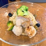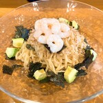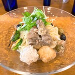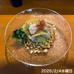 山形県河北町の郷土料理である「冷たい肉そば」「冷たい肉中華」を食べることができるお店です。冷たいあっさりとしたスープにコリコリした親鳥の肉の食感。「冷たい山椒肉中華」1,050円にすると表面に自家製の山椒油や刻み大葉、茗荷がのり、より爽やかに食べることができます。