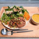 コペンハーゲンの野外フードコートを思い出させるような、そんなスタイリッシュな「RAW SOUK」ではこだわりの有機食材を使ったアサイーボウルが食べられます。カシューミルクをブレンドしたアサイーベースに、フルーツ、ベリー、ミューズリーがぎっしりのった大満足のアサイーボウル。大型クレーンの教習所だった巨大倉庫のような場所にある、ミニマルモダンな店構えは一見の価値あり!
