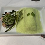 「Les six」はパイ包みでしたが、こちらのイワシとじゃがいもはパートブリックの包み焼き。「ラ・ブランシュ」には「イワシとジャガイモの重ね焼き トリュフ風味」という大傑作がありますが、このふたつの食材は最高の組み合わせなのでしょう。メニューは多彩でどれも悩むほど魅力的。フレンチでアラカルトの素晴らしいお店が増えてきたことはなによりです。