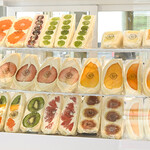 朝6時から作っているというフルーツサンドはフレッシュなおいしさ。季節によってフルーツも変わるので、行くたびに楽しみがありますね。