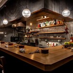場所は明大前駅から徒歩3分ほど。住宅街の中にあるこぢんまりとしたレストランです。席はカウンター7席。木のカウンター、アンティーク風の椅子や照明などイタリアの納屋をイメージしたという店内は温かみのある、大人が落ち着ける雰囲気があります。