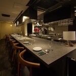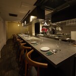 mesoでは原島シェフの斬新でモダンな料理と個性的な自然派ワインを均一価格で楽しむことができる。もう1つの楽しみは、カウンターの奥にある料理人たちのエネルギー。原島シェフは次世代の料理人を育むため、若き市川さんと佐藤さんにその技を教えている。その様子を見ながら料理を待っている時間も楽しい。カウンターにはライトがつけられ、シェフズテーブルのようになっているのもワクワク感がある。