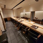 移転したのは、前店舗があったビルの2軒隣のビル5階。店内に一歩足を踏み入れれば、白木のカウンターが清々しく、凛とした空気がただよう和の空間が広がります。席は、間がゆったりとしたカウンター席。じっくりと絶品寿司と向き合える空間になっています。